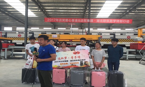 2017年8月24日達權集團·湖北聯(lián)縱聯(lián)合談笑基金給予京山縣6名今年考上本科高校貧困學子每人5000元資助,這是我公司連續(xù)5年和談笑愛心基金開展的“助學行動”的一個鏡頭。