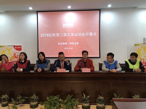 上午10許,運動會在集團董事龐達權先生致辭中拉開序幕,開幕式上集團董事長龐達權先生說道:“生命在于運動、參與就是成功、堅持就是勝利。我們倡導快樂鍛煉,快樂工作、快樂生活,愿全體員工在運動會上勇于拼搏、賽出成績、賽出水平、賽出風格。本次運動會公司還特邀京山市總工會副主席熊華偉先生出席,也對達權本次運動會寄語希望運動員們秉承奧運精神公平競爭、互相理解、友誼團結,同時預祝此次運動會圓滿成功”。