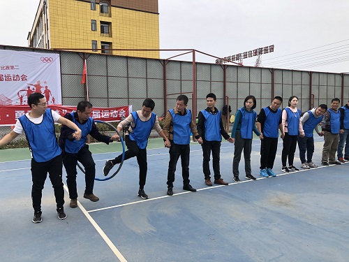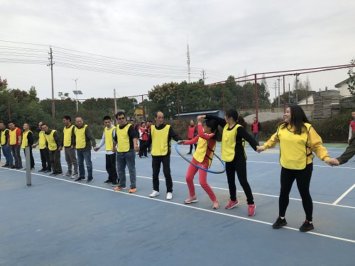 手拉手穿越呼啦圈,運動員們手拉手站立成一橫隊,呼啦圈快速地傳遞,傳遞著信任、傳遞著友誼、傳遞著快樂。