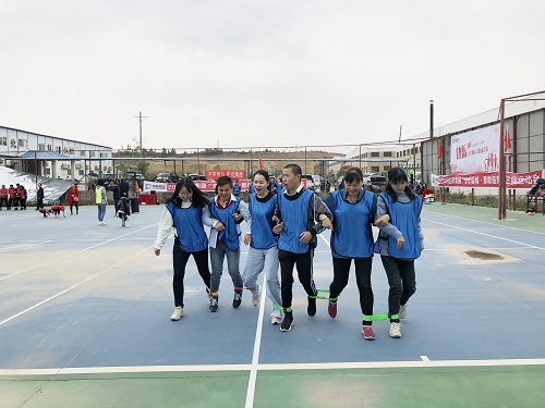 五人六足賽大家嘴里喊著“一二一……一二一”、“左右左右……左右左右”的口號,步伐一致奔向終點。