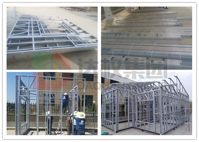 2、輕鋼龍骨安裝:房屋根據(jù)鋼構(gòu)設(shè)計定制龍骨,該結(jié)構(gòu)體系所有配件均在工廠完成生產(chǎn)加工,直接運往現(xiàn)場進(jìn)行安裝,連接部位使用自攻釘進(jìn)行固定。